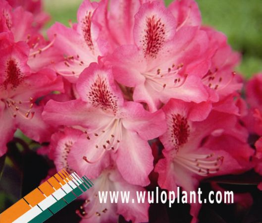 | Rhododendron Hybride Etoile De Sleidinge |  | | Kleur: | wit met fuchsia rand en rode vlek | | Bloeiperiode: | 15/5-1/6 | | Hoogte: | 120-150 cm | | Belgische hybride. Witte bloemen met fuchsia rand en rode vlek. Goed winterhard. Mooi donkergroen blad. |